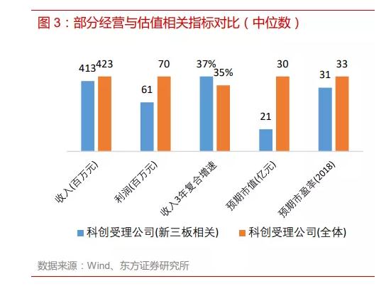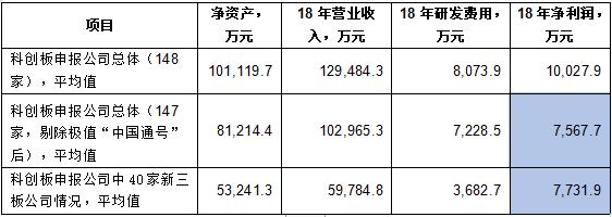 而根据东方证券研究所将与新三板相关的40家科创受理企业与全部149家科创受理企业的经营、估值以及研发等相关指标在2018年数据基础上进行比较,得到的结果: