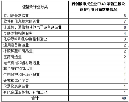 从行业维度来看,科创板申报企业中,新三板公司的行业主要集中在专用设备制造业、软件和信息技术服务业、计算机、通信和其他电子设备制造业、互联网和相关服务等行业,见下表。