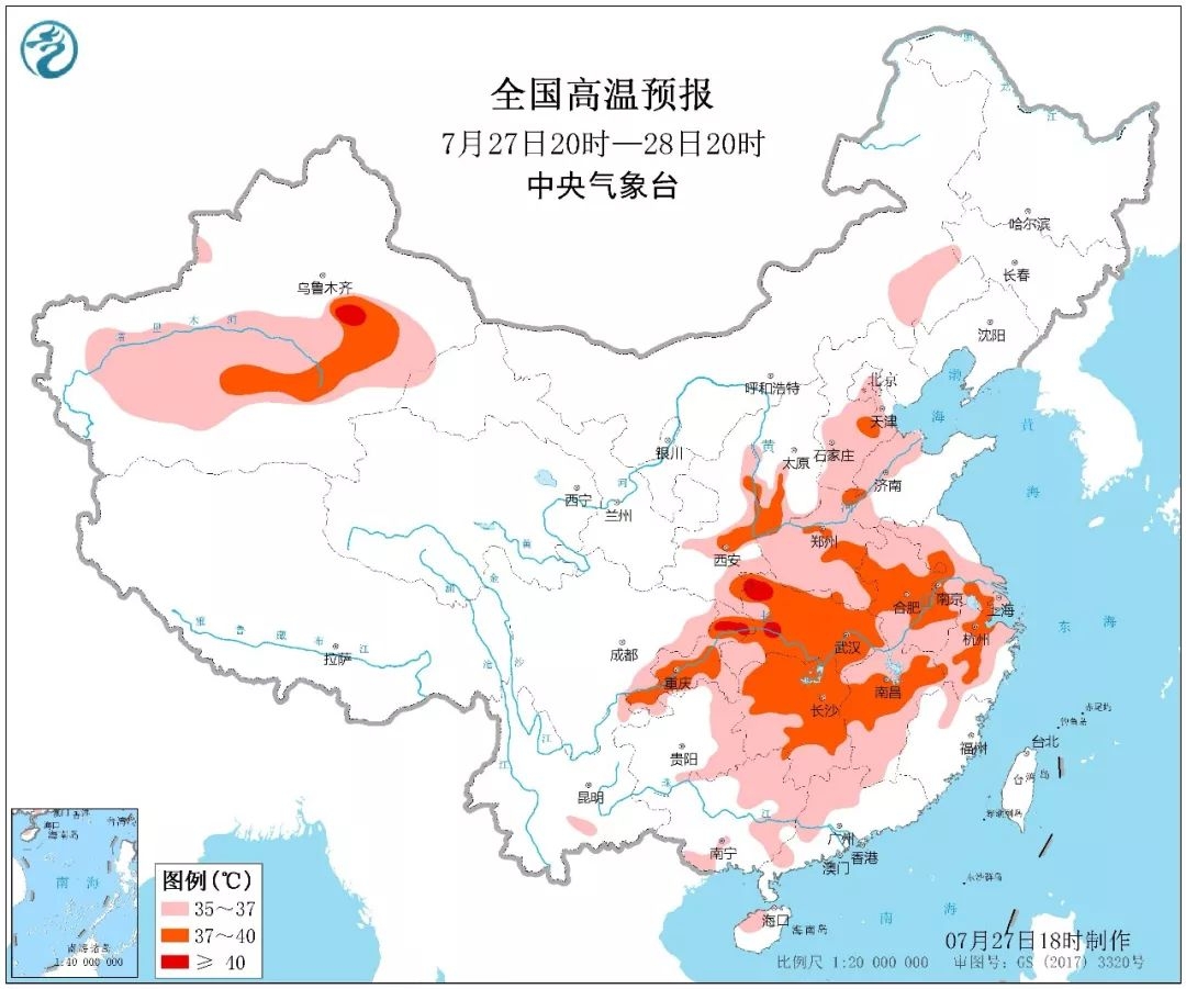 江汉西部和重庆北部局地可达40℃以上