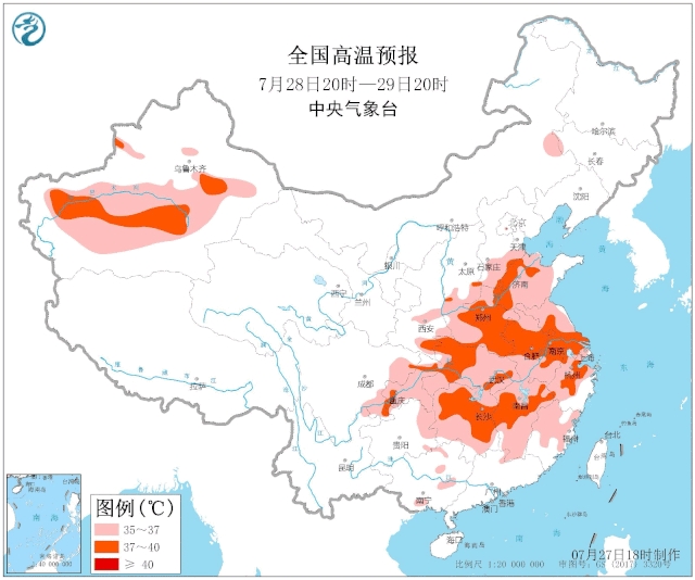 今天,中东部地区仍有35℃以上的高温天气,部分地区最高气温37℃到39℃,局地达到40℃以上。