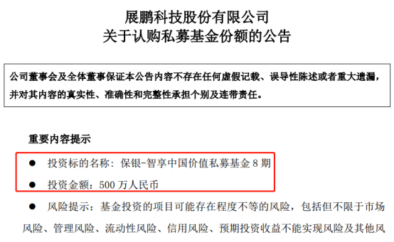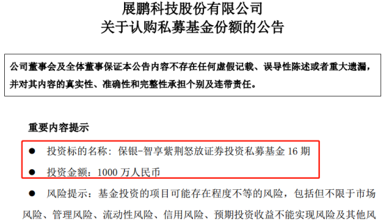 关于为什么买私募?展鹏科技称,在不影响公司正常生产经营,有效控制风险的前提下,使用自有资金认购基金份额,主要目的在于借助专业投资机构的投资能力获得财务投资收益,有利于进一步提高公司自有资金的使用效率。