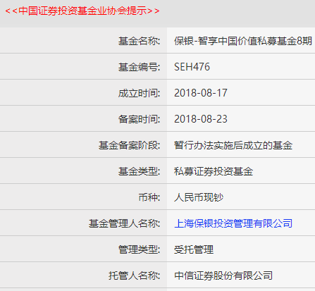 此次上市公司认购的两只基金“保银-智享紫荆怒放证券投资私募基金16期”、“保银-智享中国价值私募基金8期”分别在今年4月1日、去年8月23日在基金业协会完成备案,一只是新产品,一只是老产品。