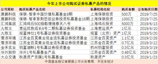 其实,据基金君不完全统计,今年已经有九牧王、汇鸿集团、雪浪环境、金禾实业、华升股份、大众交通等7家上市公司,花钱买证券私募产品理财,共砸了大概5.53亿元。以往上市公司买银行理财产品比较多,但近年来买证券私募基金来进行闲置资金理财蔚然成风。