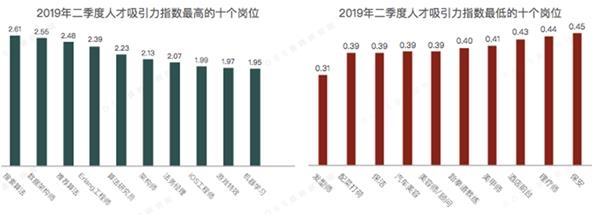 数据显示,在国民需求持续增强,5G技术开启商用时代等利好背景下,医药健康与电子通信行业人才需求显著增加,人才吸引力指数稳居前十位。而受到政策调整影响,文娱行业在二季度跌出了前十位。