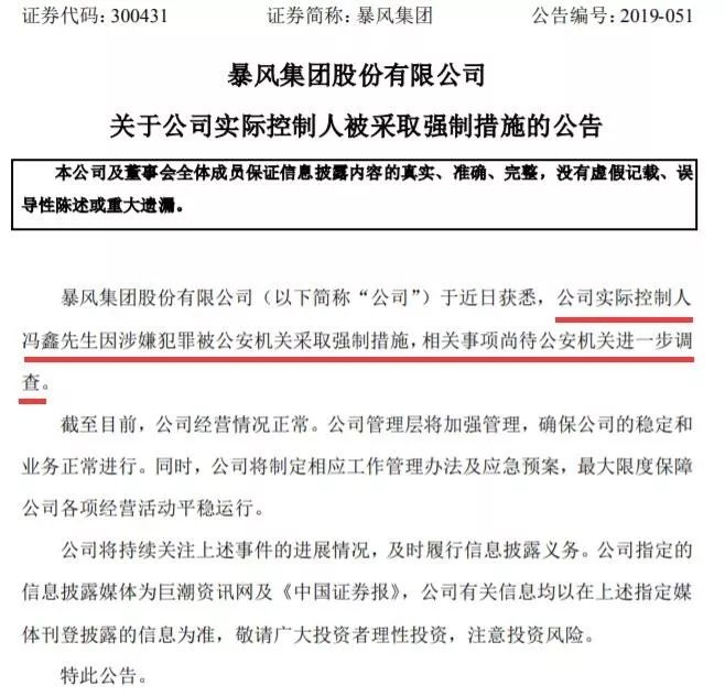 7月28日傍晚,暴风集团发布公告称,公司实际控制人冯鑫先生因涉嫌犯罪被公安机关采取强制措施,相关事项尚待公安机关进一步调查。