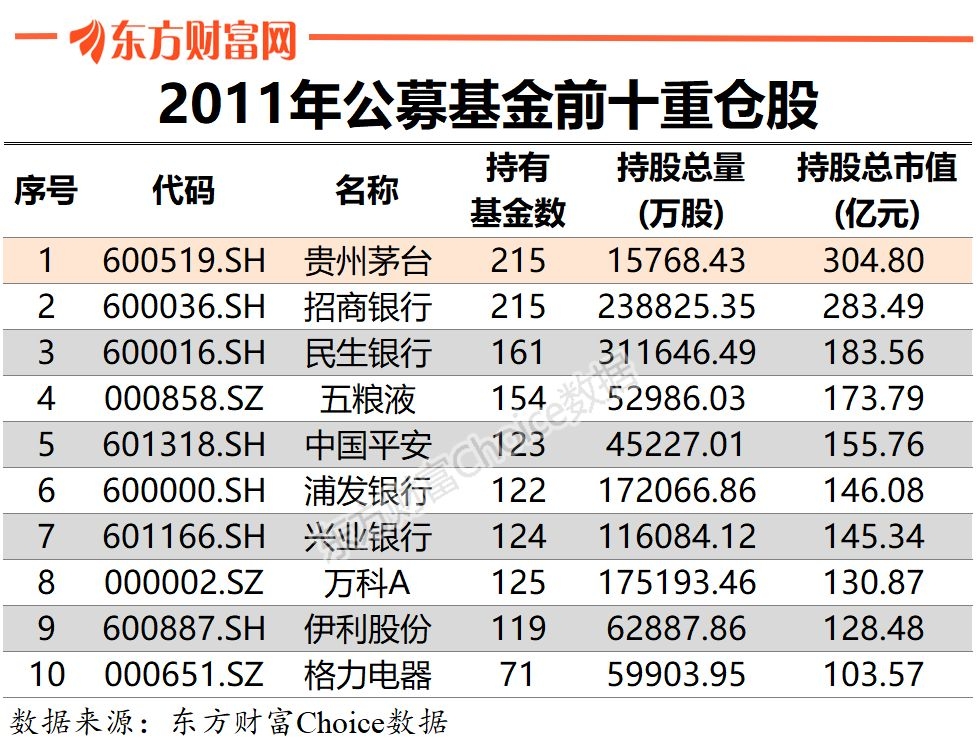 如果将时间线拉长来看,过去20年中,基金前10大重仓股不断变迁,但大多数时间内都以白马股为主,这些白马股大都经受了时间的考验。