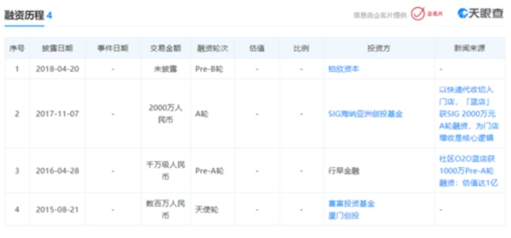 蓝店融资历程(数据来源:天眼查)