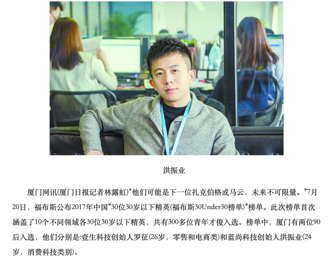 蓝店创始人兼CEO,洪振业,2016年福建省互联网优秀人才、猎云网2016年年度最佳90后创业者、2016年度厦门新经济领军人物新锐奖、2016年Asia Beat创业大赛优秀奖。2017年入选福布斯30位30岁以下创业者、厦门市第九批“双百计划”领军型创业人才。