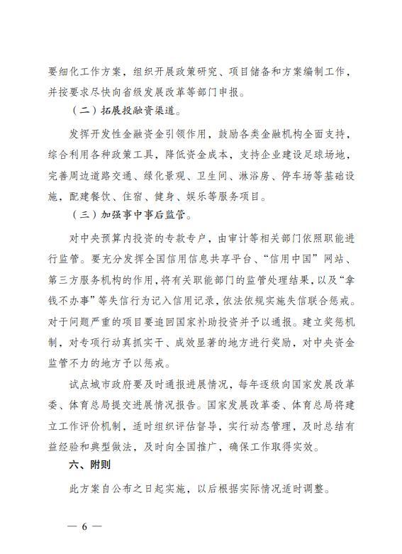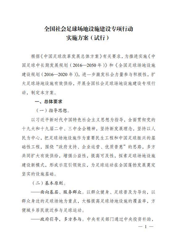 7月30日,国家发改委官网挂出通知称,国家发改委、体育总局、国务院足球改革发展部际联席会议办公室(中国足球协会)共同制定了《全国社会足球场地设施建设专项行动实施方案(试行)》。