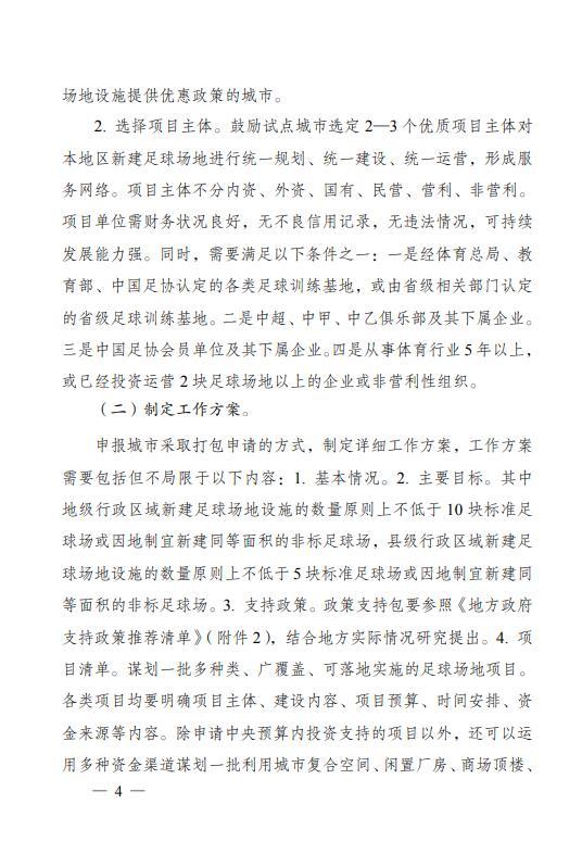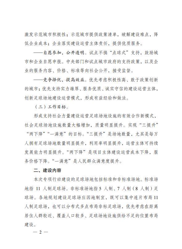 其中,地级行政区域新建足球场地设施的数量原则上不低于10块标准足球场,或因地制宜新建同等面积的非标足球场,县级行政区域新建足
