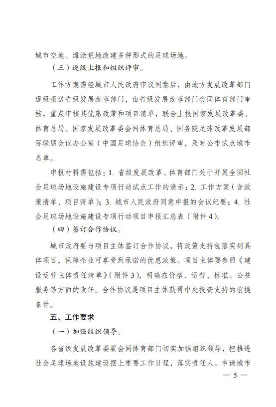 球场地设施的数量原则上不低于5块标准足球场或因地制宜新建同