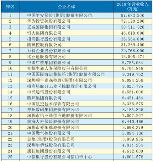 7月30日,深圳公示了2019年全市500强企业名单。