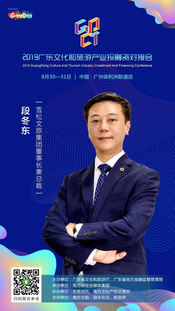 大咖来了丨雪松文旅集团董事长兼总裁段冬东确认出席2019广东文化和旅游产业投融资对接会