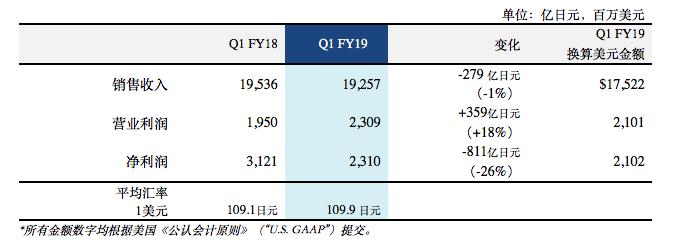 7月30日消息,索尼公司今日公布2019财年第一季度财报。财报显示,截至2019年6月30日,索尼公司当季营收为1.9257万亿日元(约合177.3亿美元),同比去年下滑1%。