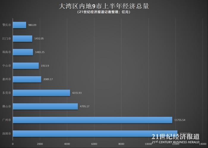 作为中国经济最强劲区域,粤港澳大湾区内地9座城市已悉数公布上半年经济数据。