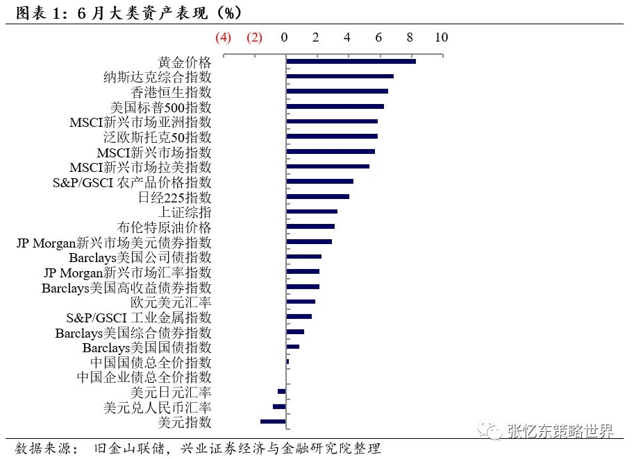 6月5日美联储主席鲍威尔在 Fed Listens 会议上表达了强烈降息信号,极大地刺激了股市、债市、黄金,商品和外汇市场,使得2019年6月出现了罕见的所有大类资产同涨的情况。