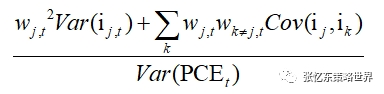 直觉上:一个细项如果对总体PCE影响大需要满足三个条件,1)权重大;2)波动大;3)能够带动其他分项一起变动(协方差大)。以上定义方式的好处是,各个分项的“解释度”求和恰好等于1(在假设PCE是各个分项的线性加权情况下,PCE的波动就等于各个分项波动和协方差的线性加权)。