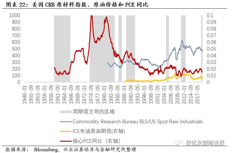 当周期项解释度大于0.5,我们认为此时PCE为周期项所主导。60年代至今由周期主导的通胀时间段如下: