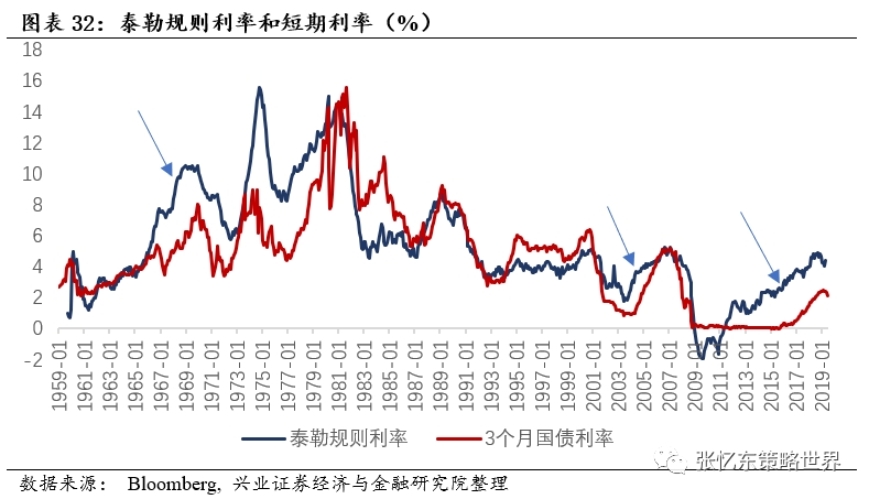 图上有三段短期利率显著低于均衡利率的情况,前两段均给美国经济带来沉重打击。第一段是60年代末期低利率环境的对通胀的影响;第二段是2000年初的迟缓加息导致的信用扩张和增加金融体系脆弱性的“金融创新”。第三段金融危机以来,美联储一轮又一轮的量化宽松使得政策利率已远低于均衡利率。