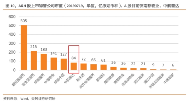 从2014年彩生活敲开资本市场大门以来,目前,在H股和A股市场上共有14家已上市的物业管理公司。借力资本市场,企业更加重视高质量发展,加大技术创新、有效提升经营效率、转变服务模式,通过登陆资本市场助力企业进一步增强品牌效益、吸引高端人才,进而为业主提供更为优质的服务。与此同时,资本市场也日益对优秀物业服务企业青睐有加,上市物业服务企业市值呈现不断升高态势。2019年7月19日,碧桂园服务的市值为505亿港币,为行业最高,是第二名的两倍有余。目前A股上市物业公司仅南都物业、中航善达,中航善达完成收购后,将成为A股市场上又一个物业管理巨头,作为稀缺标的前景可期。