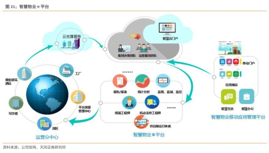 在公司转型战略的牵引下,物业管理业务加大了智慧物业平台的研发投入,在智慧城市的框架下,利用物联网、图像识别、大数据和信息化管理技术等,构建基于“互联网+”的智慧物业集成服务平台——智慧物业π平台。2018年,智慧物业π平台覆盖规模较2017年大幅提升,已进入15个省、4个直辖市,共计178项功能陆续在全国368个项目上线。