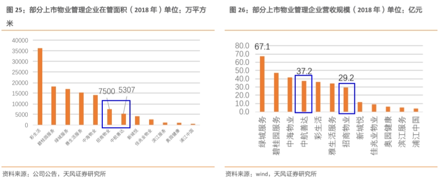 2)公司绝大多数业务收入来自物业管理,目前员工规模16000余人,在管物业逾500个,服务面积超7500万平米,服务客户人数超百万。截至2018年底,招商物业总资产16.98亿元,年营业收入29.2亿元,假设全部来自于物业管理,则单位面积物业费约为3.24元/平/月,低于中航善达的5.84元/平/月。