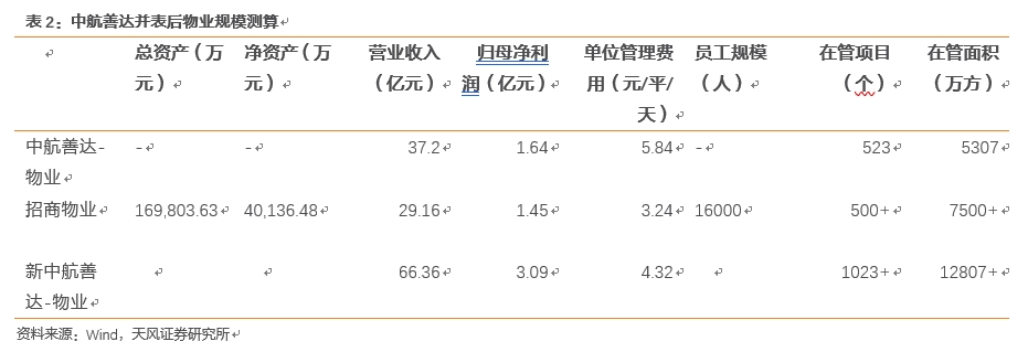 强强联手,并购后物业管理面积将近1.3亿平米、收入比肩绿城服务。中航善达与招商物业均为深耕深圳,布局全国的物业管理企业,尤其在非住宅物业领域均处于行业领先地位。若中航善达与招商物业的重组推进顺利,完成后中航善达物业管理面积将近1.3亿平、仅物业服务营收规模超过66亿,仅次于绿城服务,成为A股龙头。