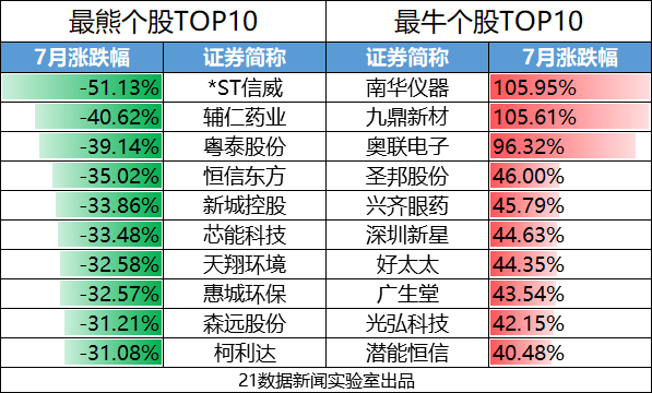 六张图看懂7月行情:最牛股价翻倍,最熊连续14个跌停