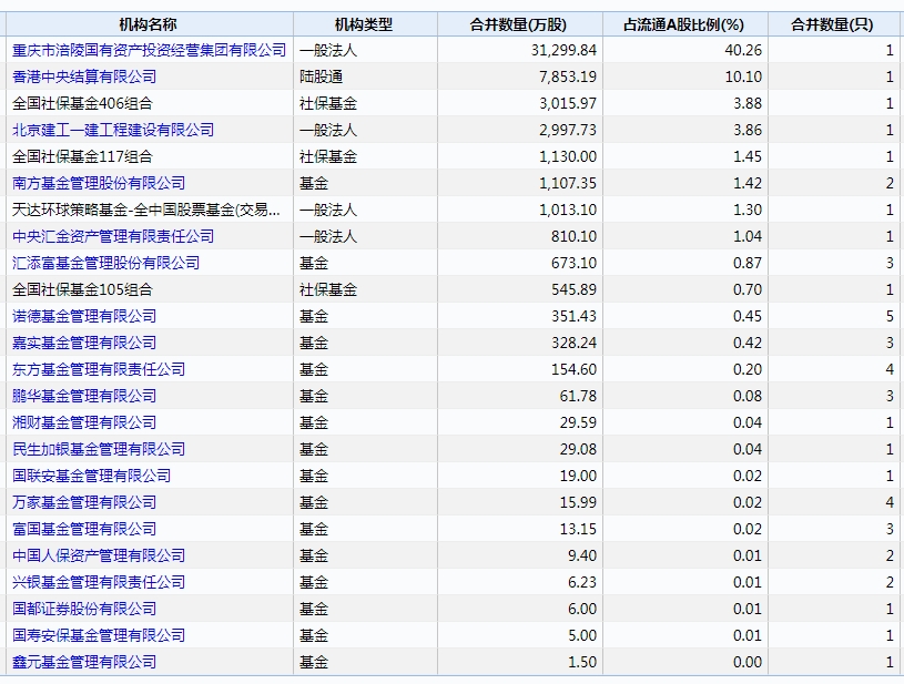 截至2019年上半年末,涪陵榨菜的股东榜中,社保基金406组合持有3016万股,社保基金117组合持有1130万股,社保基金105组合持有546万股。中央汇金持有810万股,南方中证500ETF持有662万股,汇添富成长焦点混合持有600万股。从机构投资者持股数量看,南方基金持股最多,达1107万股,汇添富基金次之,持有673万股。