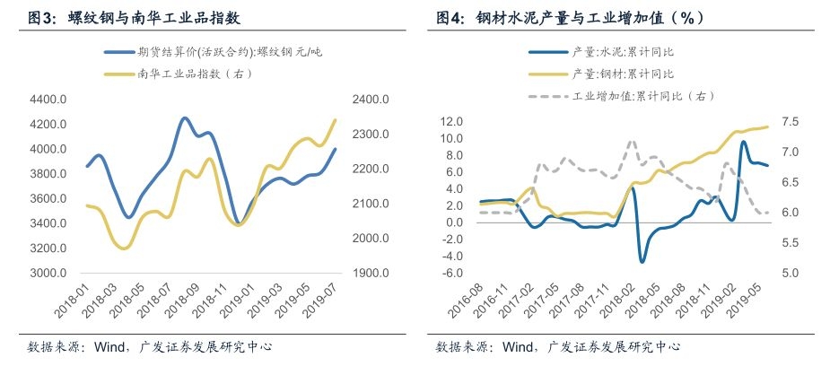 复盘2019年以来的库存走势:主动去库存周期,夹杂Q2一定程度被动补库存。2018年11月开始,库存重新进入下行周期,至今已两个季度以上,但其中2019年Q2有一定程度的短暂补库存出现。我们猜测这一现象可能的背景是:1)出口下行较快和贸易摩擦反复导致中下游库存有一定被动积压;2)货币条件改善推动房地产施工高位和建筑业产业链活跃,这进一步带来上游价格坚挺,上游特别是螺纹钢等价格Q2反弹带来部分行业补库存预期;3)信用二元化约束货币扩张效果由上游向下游传导,从而约束奥派经济逻辑下的短周期“出清”。