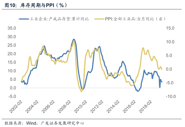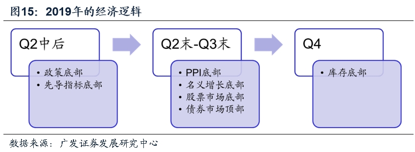 第五,目前经济已继续主动去库存,从PPI领先等经验规律看,本轮库存底部可能在2019年Q4。