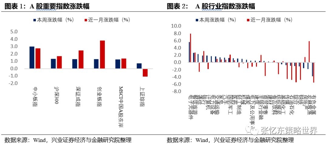 1.1、A股本周回顾:1)A股成长风格表现更好,受科创板首批公司上市以及苹果新机的消息驱动,中小板指和创业板指领涨,行业TMT领涨,低价股、亏损股落后。2)当前沪深300、创业板、中小板和MSCI中国A股在岸指数的PE分别处于2011年58%、55%、17%、43%分位数水平;分行业来看,食品饮料、农林牧渔的PE、PB处于2011年以来较高水平。3)换手率、涨跌停家数比、融资融券数据显示投资者情绪处于低位。