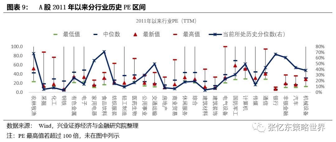 分行业来看,除了金融和原材料,其余行业的市盈率均达到2004年以来的3/4分位数水平,中概股预测市盈率为32.7,接近15年以来的平均水平。