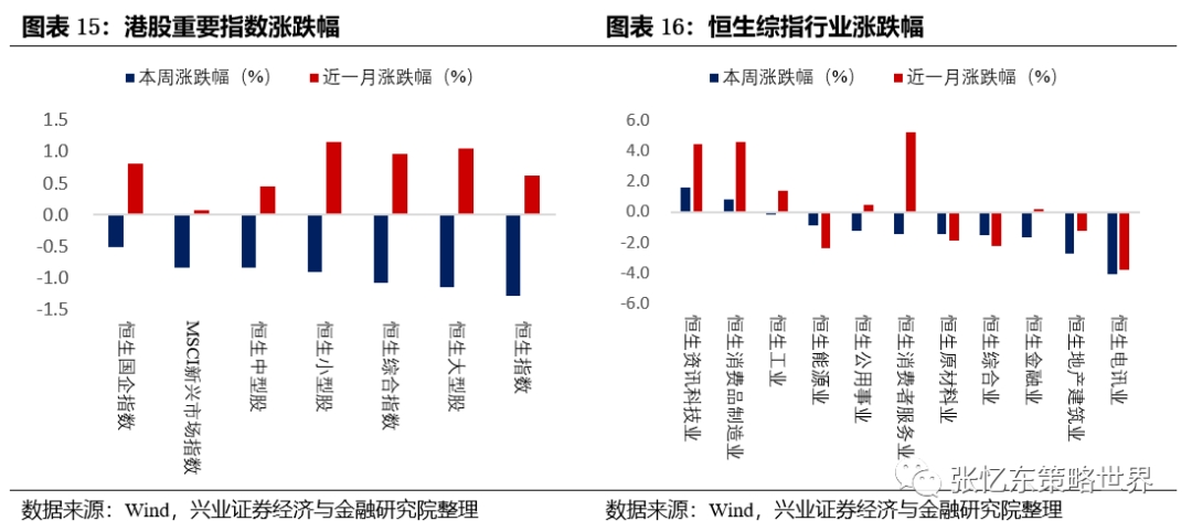 本周,恒生国企指数下跌0.51%,表现明显好于恒生指数1.27%的跌幅,香港本地地产股走弱而拖累了恒指表现。