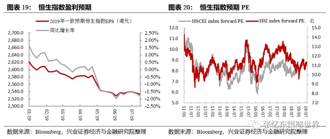 恒生指数一致预期EPS自6月以来保持稳定,本周较上周下调了0.1%,截止7月26日,恒生指数一致预期2019年EPS同比下降1.78%。恒生指数预期市盈率(PE)11.21倍,低于2011年以来的平均值。当前恒生指数的股息率为3.45%。