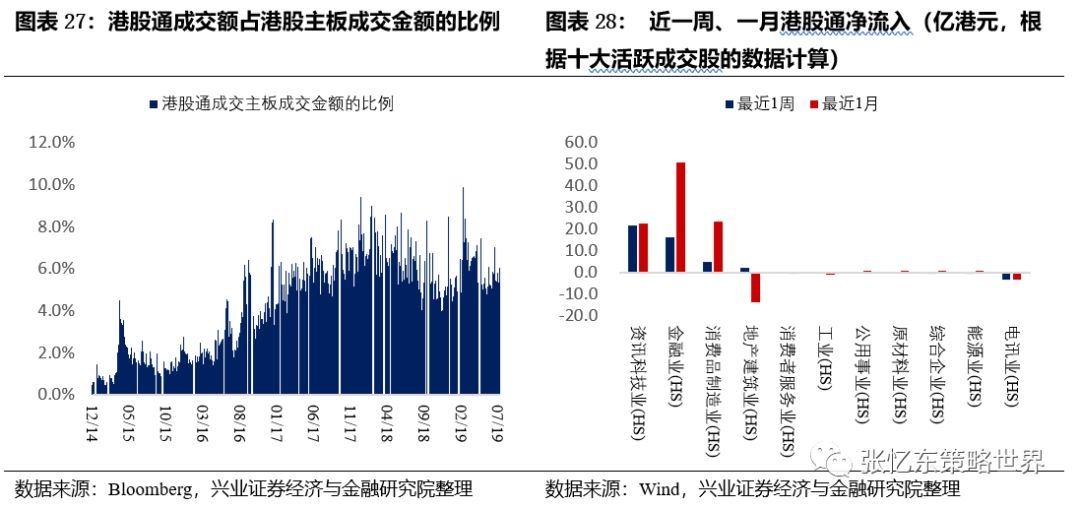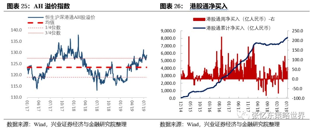 港股本周回顾:1)港股恒生国企指数表现明显好于恒生指数,香港本地地产股拖累恒指表现;科技股和内需消费股是热点。恒生综指行业指数中仅资讯科技业、消费品制造业上涨;近1月受博彩股驱动涨幅最大的消费者服务业,在金沙中国二季度业绩逊于预期的影响而回调。2)恒生指数一致预期EPS自6月以来保持稳定。3)港股估值在历史低位,恒生指数和恒生国企指数PE处于2011年以来中位数附近。叠加AH溢价回到历史较高水平以及人民币贬值预期,“北水”近几个月持续流入港股。本周港股通净流入64.32亿元,流向科技、金融和消费品制造业。4)卖空成交占比14.81%,处于2011年以来的高位,显示市场谨慎心态。