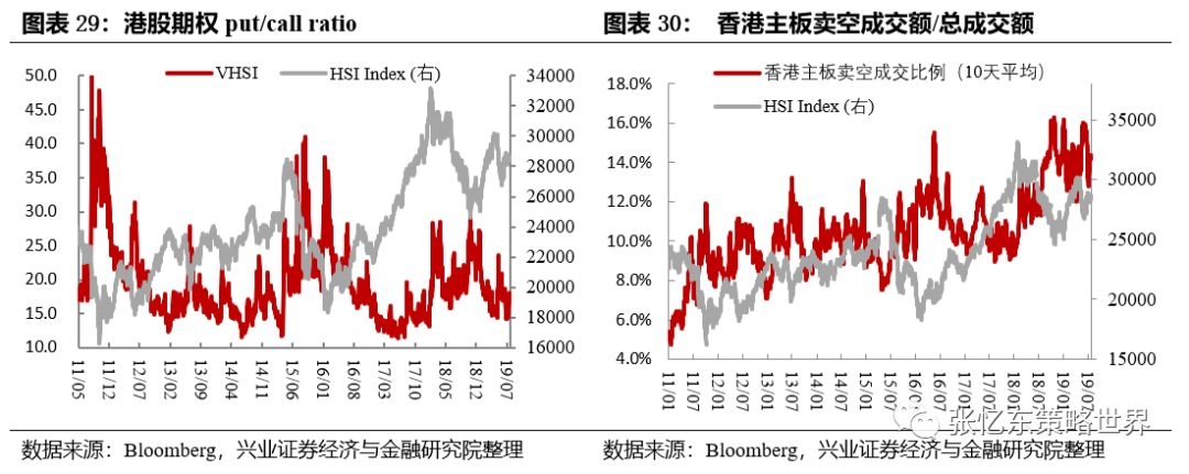 恒生指数波幅指数18.08,较上周上升,处于2011年以来中低水平。卖空成交占主板成交金额的比重为14.81%,较上周回落0.19个百分点,但仍处于2011年以来非常高的水平。这些都显示了港股市场的整体谨慎心态。