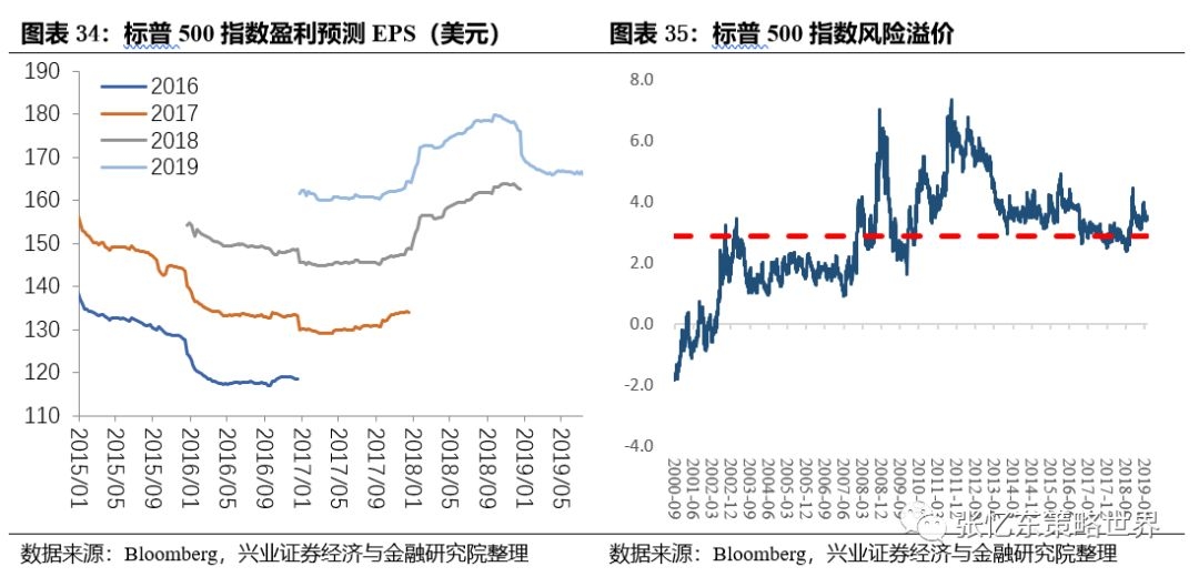 标普500预测市盈率18.2倍,高于1990年以来3/4分位数水平;由于无风险利率处于低位,标普500指数隐含的风险溢价仍高于2000年以来的均值。
