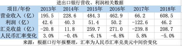 财务数据显示,2016年人民币兑美元汇率贬值幅度高于2015年,口行汇兑收益也略高于2015年。2018年情况也类似。