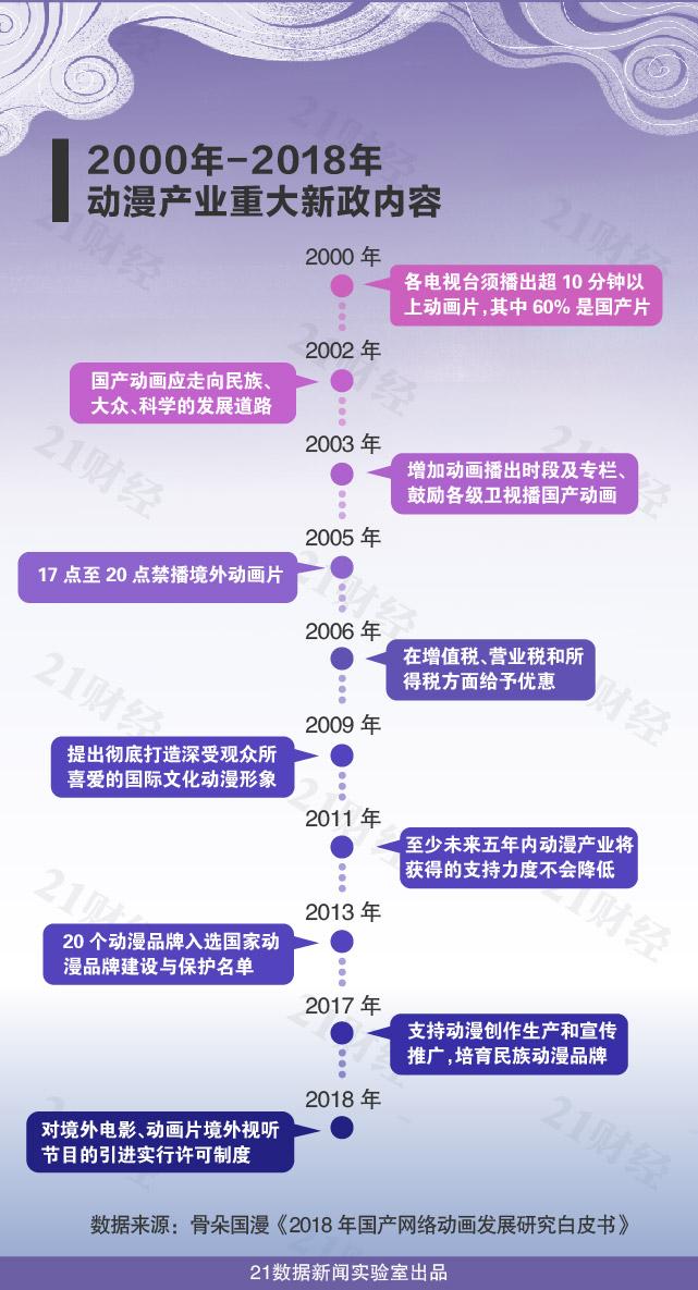 2000年之前,进口动画片几乎占领了中国动画市场,2000年后,针对原创动画片的扶持政策陆续出台,以税收优惠和补贴大力扶持国产动画,并对进口动画限制播出,将黄金时档播出资源划给国产动画。
