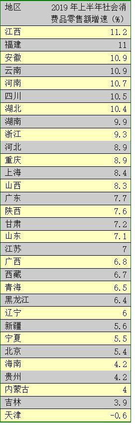 从各地经济增速看,今年上半年经济增速最快的是云南,而去年同期贵州和西藏并列第一。第二名是贵州和西藏,增速都为9%,江西经济增速为8.6%,福建为8.1%,湖北、安徽经济增速为9%,四川经济增速为7.9%,河南、湖南经济增速分别为7.7%、7.2%。