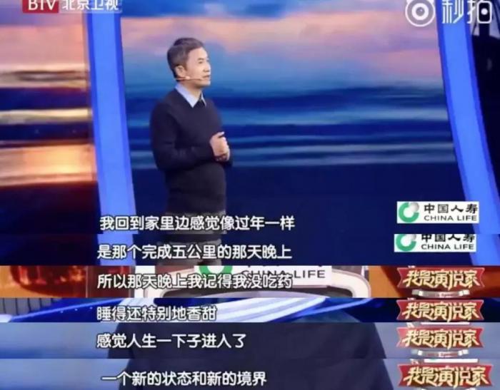 “那个完成五公里的晚上,我回到家里边感觉像过年一样,那天晚上我没有吃药,睡得还特别香甜,感觉人生一下子进入了新的状态和境界。”