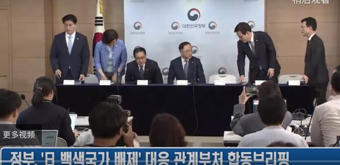 上午日本正式决定将韩国踢出出口优惠白名单,下午韩国的反制措施就来了,当地时间8月2日下午,韩国政府相关部门举行联合记者发布会,韩国副总理兼企划财政部长官洪楠基在会上表示,韩国政府将加强对日出口管制,把日本移除出口“白名单”。