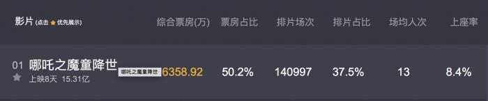 截至8月2日下午13时,由光线传媒出品的《哪吒之魔童降世》票房已达15.31亿,上映八天打破了《疯狂动物城》保持了3年的国内票房纪录,成为新晋动画电影冠军。