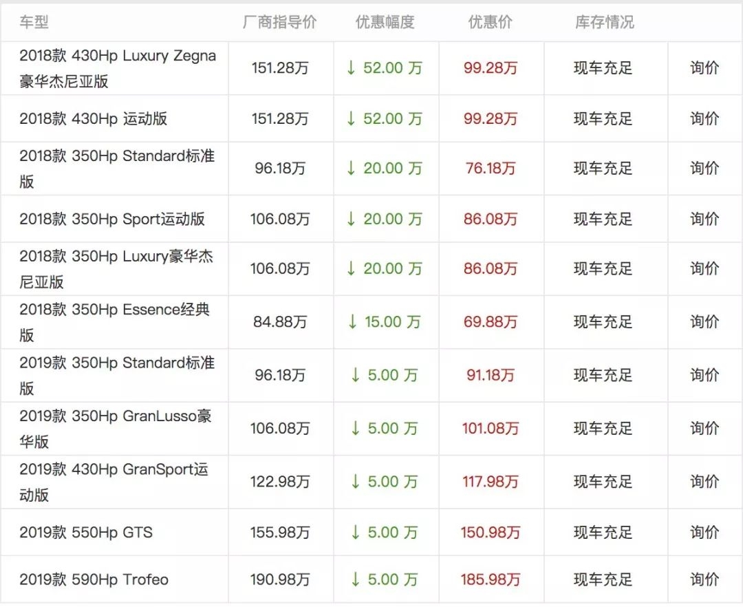 在买车网平台上,《21CBR》记者发现,针对Levante的2018款顶配版,有北京经销商给出不到百万的优惠价,降价幅度达52万元,2018款入门版的优惠力度也达到15万元。