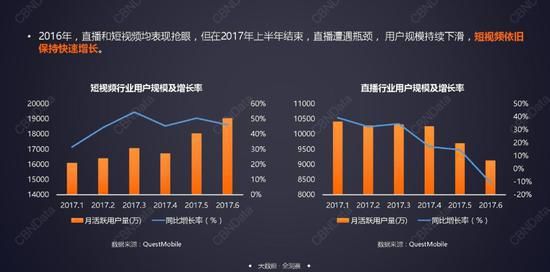 2017年上半年结束,直播遭遇瓶颈,用户规模持续下滑,而短视频依据高速增长。