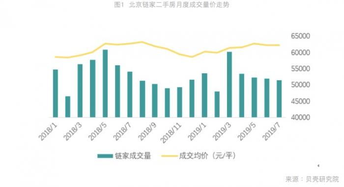 贝壳研究院数据数据也显示,7月北京链家二手房实时成交环比下降4%,而从上半年数据来看,北京市场二手房成交量为7.3万套,创下近五年同期最低值,同比2018年上半年成交量下降5.3%,同比2016年历史成交高点下降了45.6%。