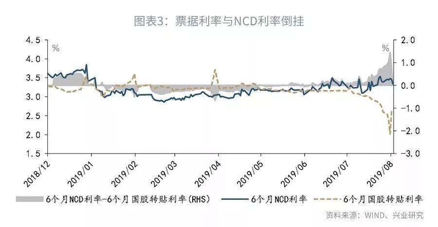 7月3个月股份行NCD利率一度下跌至2.50%以下,不仅不突破了2019年4月初的低点,更是低于2.55%的7天逆回购利率,这或许意味着降低逆回购利率的预期已经被市场所透支。自有2014年有数据以来,鲜少出现3个月股份行NCD利率逼近7天逆回购利率甚至倒挂的情况。而每当NCD利率逼近7天逆回购利率甚至倒挂之后往往会出现一轮NCD利率的反弹。
