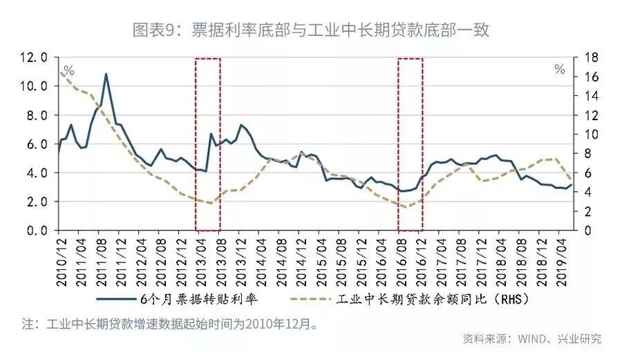 2018年全年新增房地产开发贷1.89万亿,同期新增工业中长期贷款4900亿,2017年新增制造业贷款3197亿。由此可见,制造业领域贷款绝对规模较小,加之目前制造业利润增长较慢,短期内制造业融资难以完全弥补房地产开发贷放缓所导致的融资需求缺口。在这一背景下,票据利率可能继续在低位震荡。历史经验表明,票据利率的底部与工业中长期贷款增速的底部一致,因此,票据利率回升还有待工业融资需求的回暖。