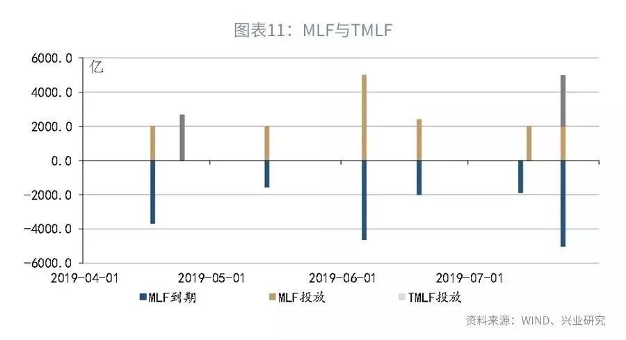 回顾7月,经过上旬的资金面宽松之后,中下旬货币政策在量与价两个方面都出现了微妙的变化。第一,央行公开市场投放的资金量有所收缩。在2017年7月15日至20日,即缴税对资金面扰动较大的时间,央行逆回购投放5700亿;2018年同期,央行逆回购投放5800亿;而2019年同期,央行仅通过逆回购投放了4600亿。随后在7月23日5020亿MLF到期时,央行通过MLF加TMLF的方式投放了4977亿流动性,略低于当日MLF到期规模。这反映出央行有意回笼部分流动性,将银行间流动性水位控制在合意水平。